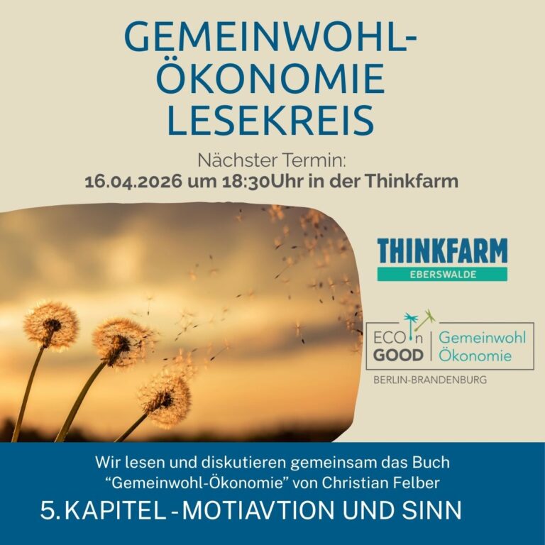 Am Mittwoch findet unser nächstes Treffen in den Räumlichkeiten der Thinkfarm Eberswalde statt. Anmeldung: Für…